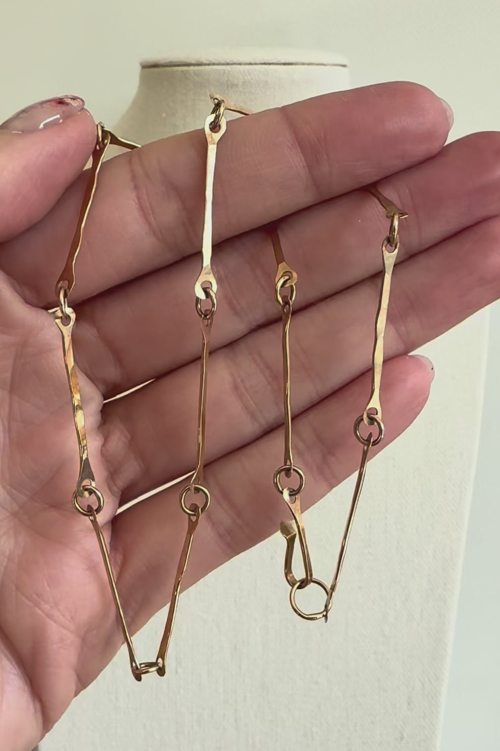 Add a touch of whimsy to your stack with this handmade bar link necklace. Its subtle hammered texture catches the light from every angle and it plays harmoniously with others.