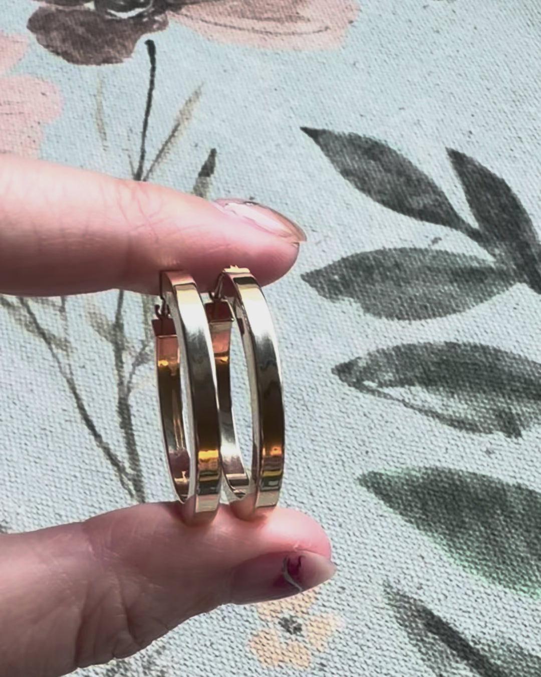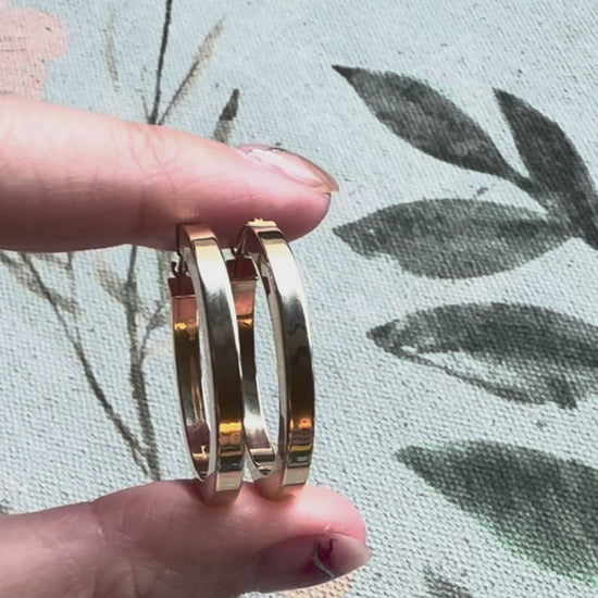 Condition: Good vintage condition. One hoop has a file mark (likely from gold testing) that is not noticeable when worn.