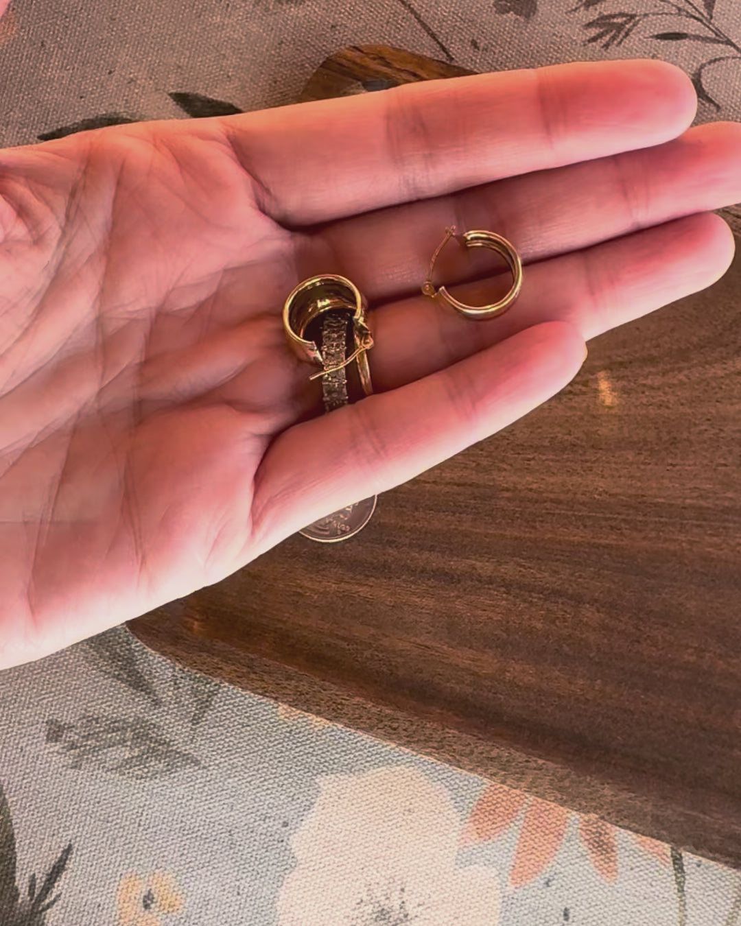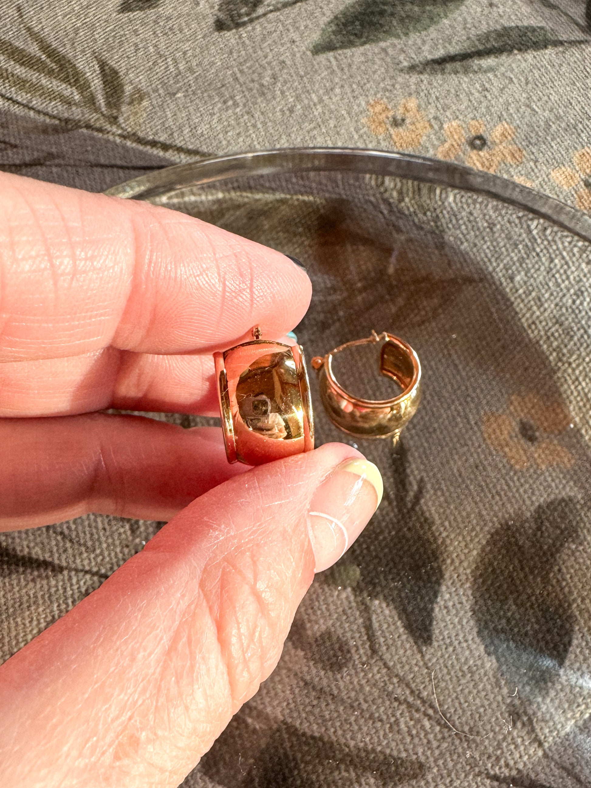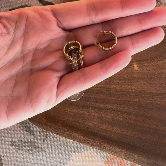 This traditional silhouette is excellent for everyday. Wide enough to make a statement, but light enough to forget they’re on, you’ll reach for these year round to pair with jeans, a sundress or even a winter sweater. Crafted from 14K yellow gold, these are in perfect condition, with a lovely vintage patina. Details below.