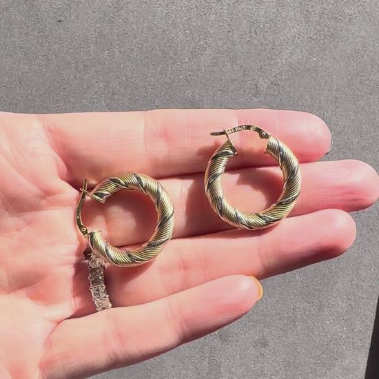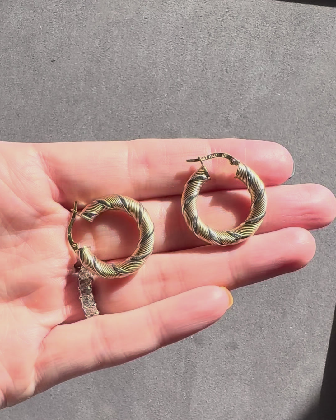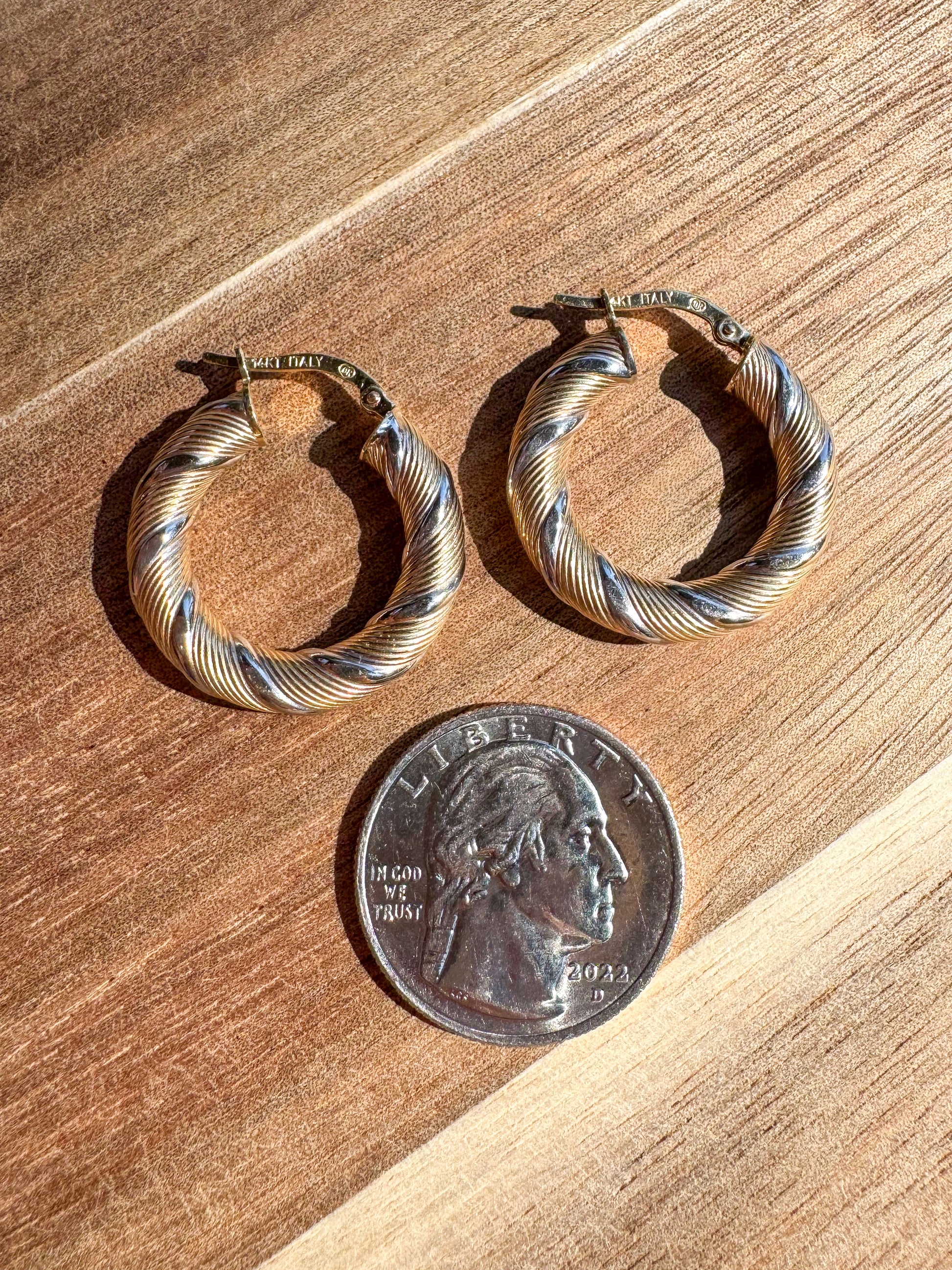 A fun pair of hoops for my mixed-metal girlies, these 14K yellow and white gold twisted cable hoops are super sparkly and the perfect size for every day. More details below!