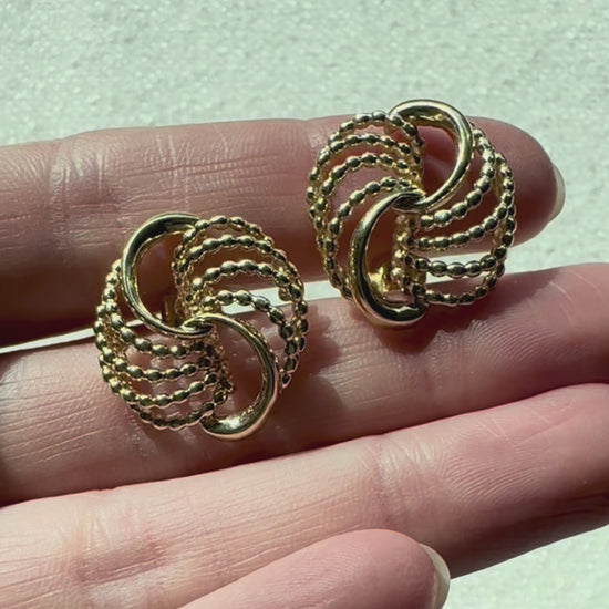 14K Vintage Circular Swirl Statement Earrings