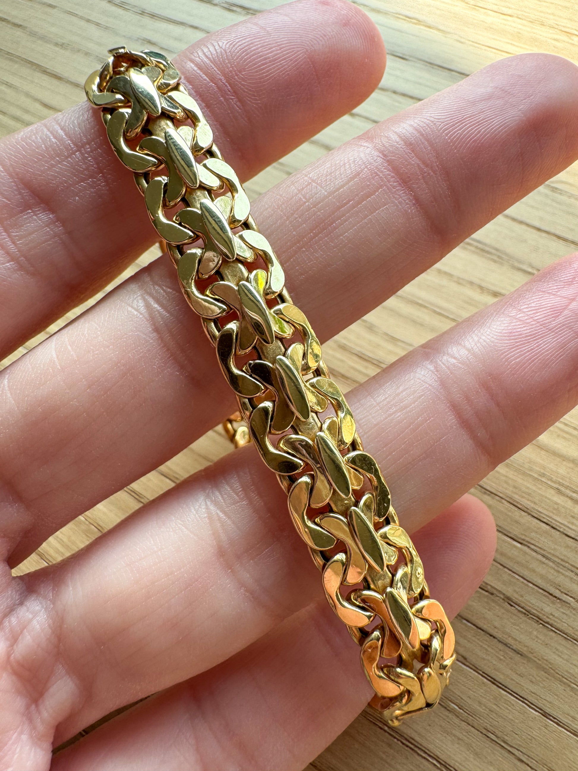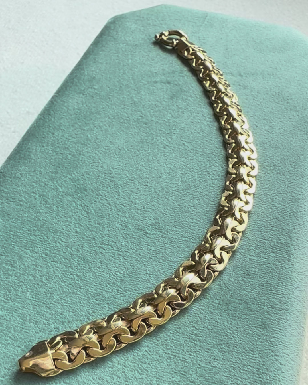 True to Aurafin quality, the craftsmanship and design of this 14K yellow gold flat link bracelet are superb.