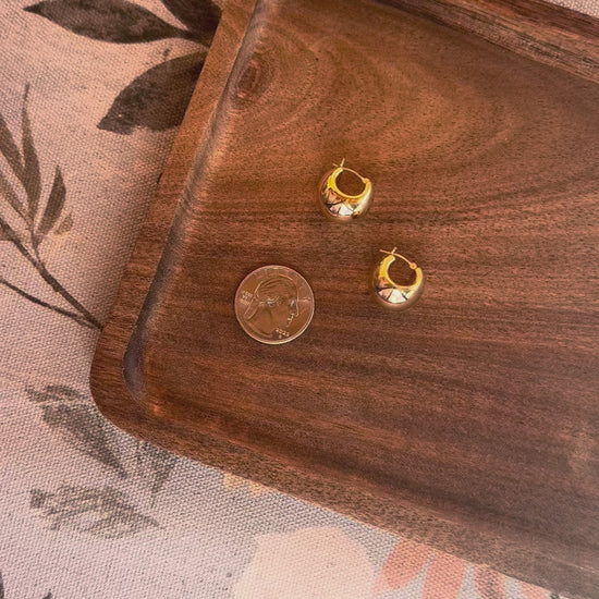 Condition: These are in good vintage condition. One earring has a few very small dings along the side and on the back (near the latch) that are not at all visible when worn. The hinge and latch closures work perfectly.