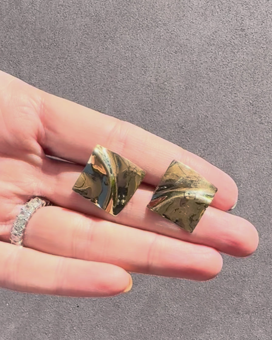 Condition: These are in vintage condition. One earring has two tiny dents in the center, which while semi-visible, really just look like part of the organic crinkle pattern. Priced accordingly.