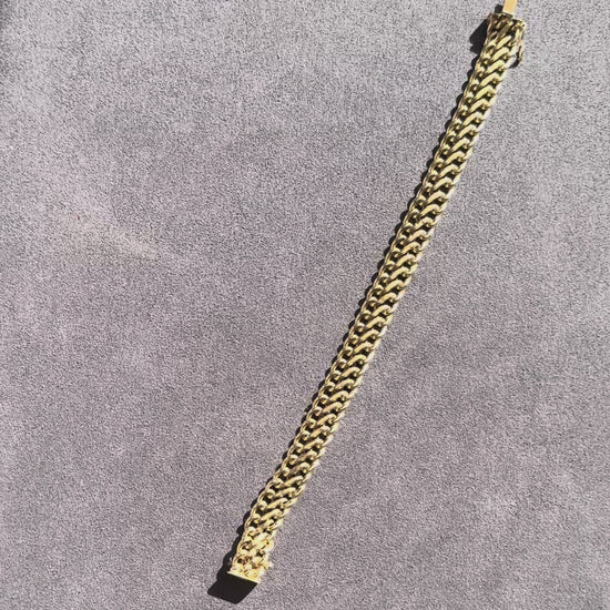 Condition: This bracelet is in good vintage condition. There are a few small dings that are pretty well hidden by the link pattern and are not noticeable when worn. The open box clasp and safety are functioning perfectly.
