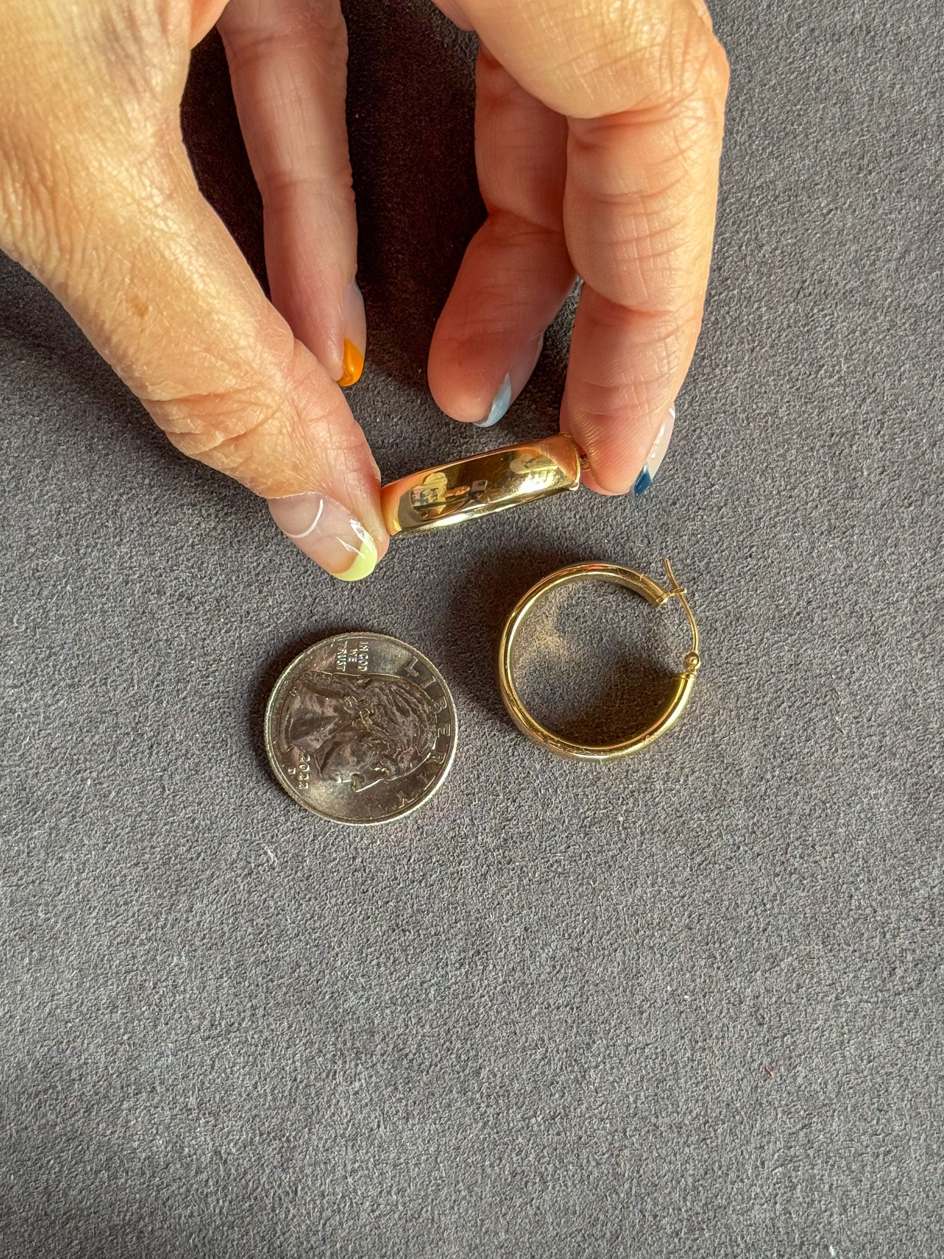Size: The hoops have an outer diameter of 25 mm and an inner diameter of 20 mm inner diameter. They are 6 mm wide and 2.5 mm thick.